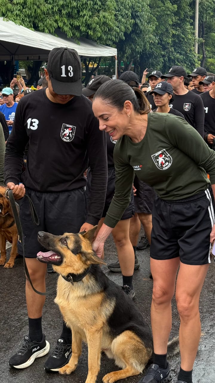 A comandante-geral da PMDF, coronel Ana Paula Habka, participou da corrida acompanhada da tropa do Batalhão de Policiamento com Cães (BPCÃES), reforçando o compromisso da corporação com a promoção da saúde, da qualidade de vida e da aproximação com a sociedade.