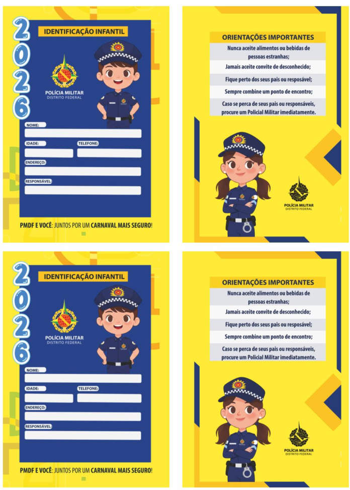 A tradicional campanha de identificação infantil da Polícia Militar do Distrito Federal (PMDF) retorna no Carnaval de 2026 como uma medida essencial para evitar desaparecimentos e garantir a segurança dos pequenos foliões.